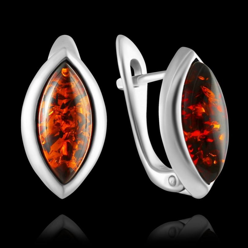 Wunderschöne Ohrringe aus rhodiniertem Silber 925 Probe, mit Bernstein, erstaunlichen "Stück der Sonne" in Cognactönen! Eine einzigartige Gelegenheit, Ihre Individualität zu betonen, das Bild von Weiblichkeit, Sonnenschein und Zärtlichkeit zu vermitteln.