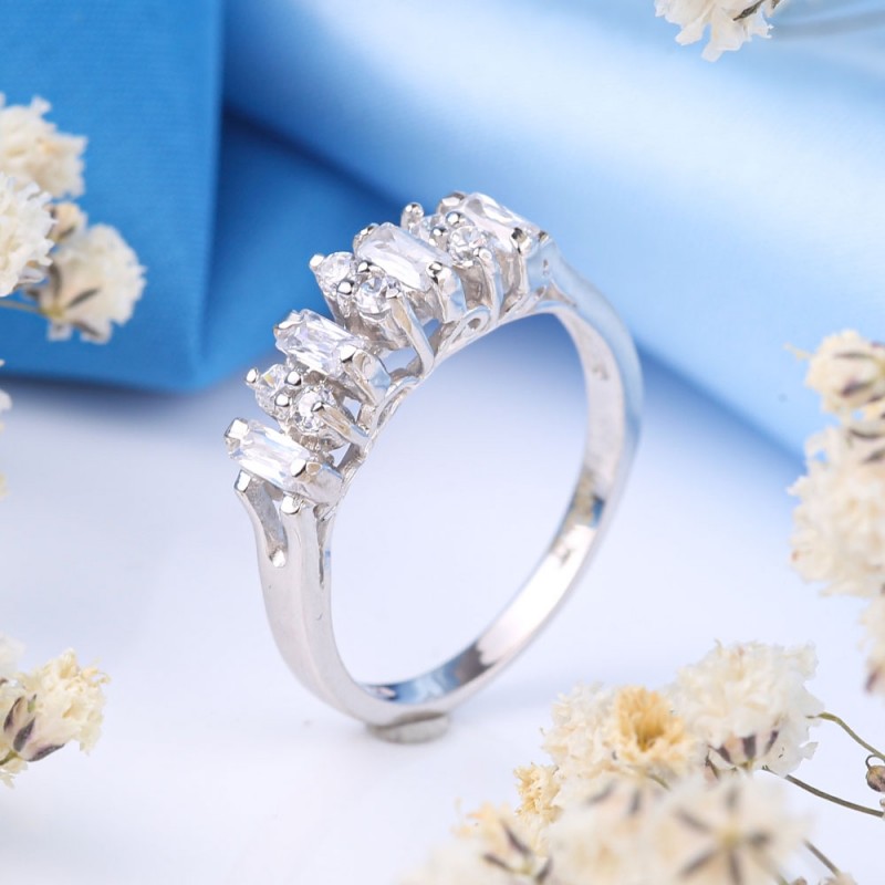 Romantischer, zarter Ring mit charmanten funkelnden Zirkonias. Der Ring wirkt prägnant und stilvoll in einem wunderschönen Rahmen aus 925er Sterlingsilber und schafft eine helle und lebendige Komposition. Es wird die Zartheit, den Charme und die natürliche Schönheit Ihrer Hände perfekt betonen!