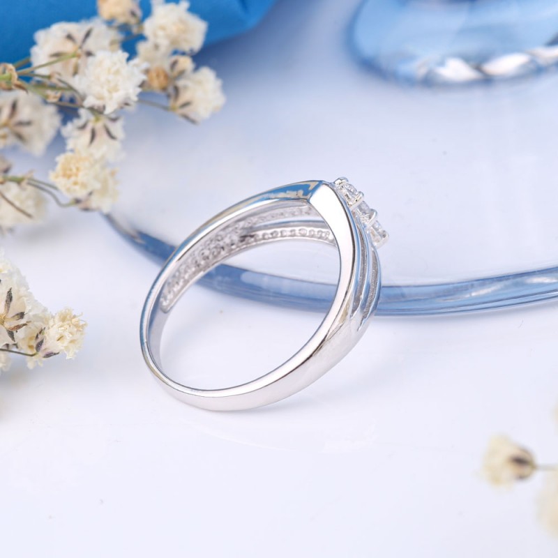 Romantischer, zarter Ring mit charmanten funkelnden Zirkonias. Der Ring wirkt prägnant und stilvoll in einem wunderschönen Rahmen aus 925er Sterlingsilber und schafft eine helle und lebendige Komposition. Es wird die Zartheit, den Charme und die natürliche Schönheit Ihrer Hände perfekt betonen!