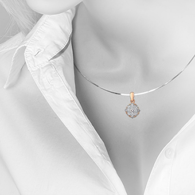 красного золота 585 пробы, украшенная сверкающими