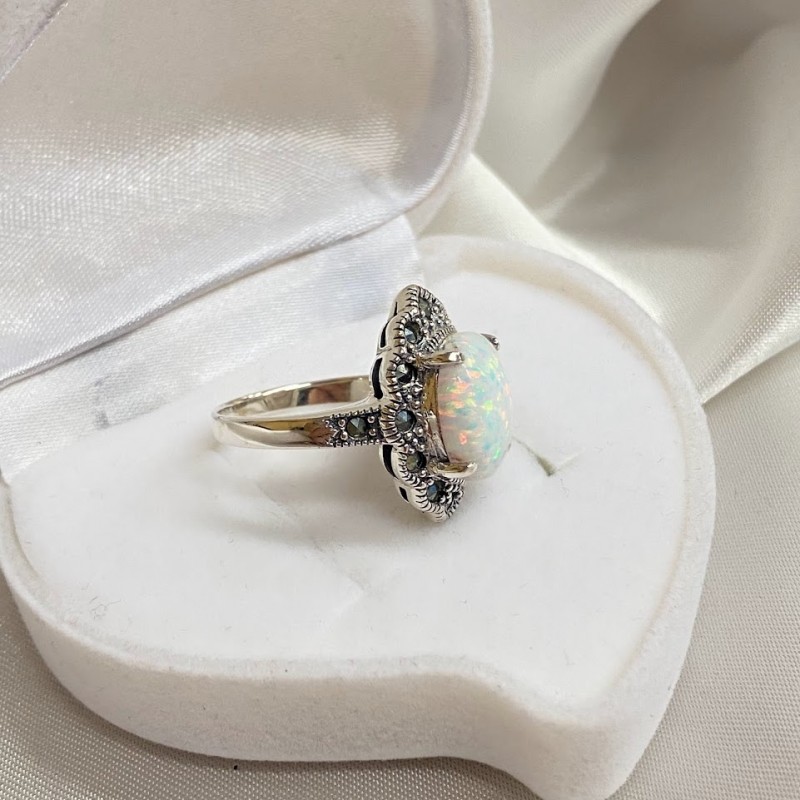 Silberring mit Opal & Markasit