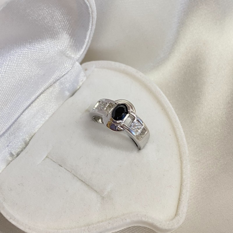 Einsatz: 1 Zirkonia oval schwarz 6,0 x 4,0 mm; 8 Zirkonia-Kreise Ø 1,0 mm