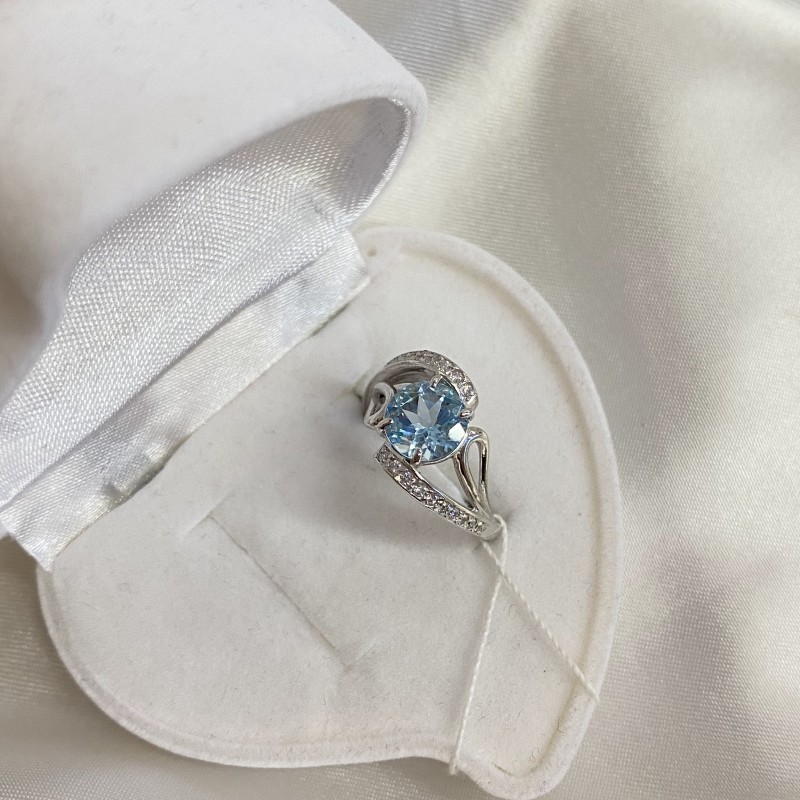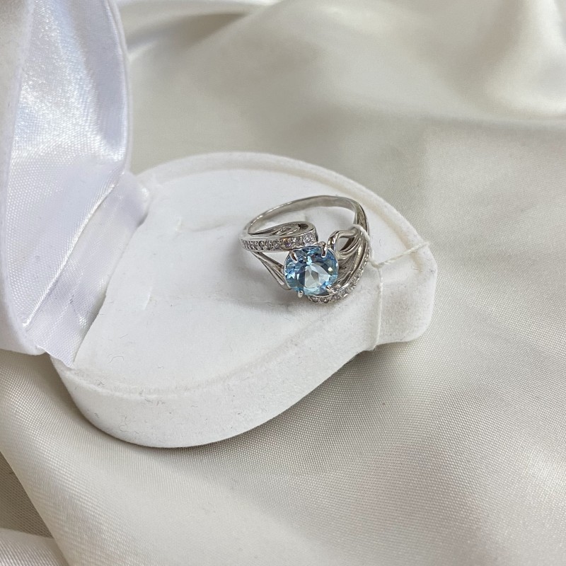 Herrlicher zarter Ring mit charmanten blauen Topas und Zirkonia in einem schönen Silberrahmen aus 925er Silber. Rhodiniert!
