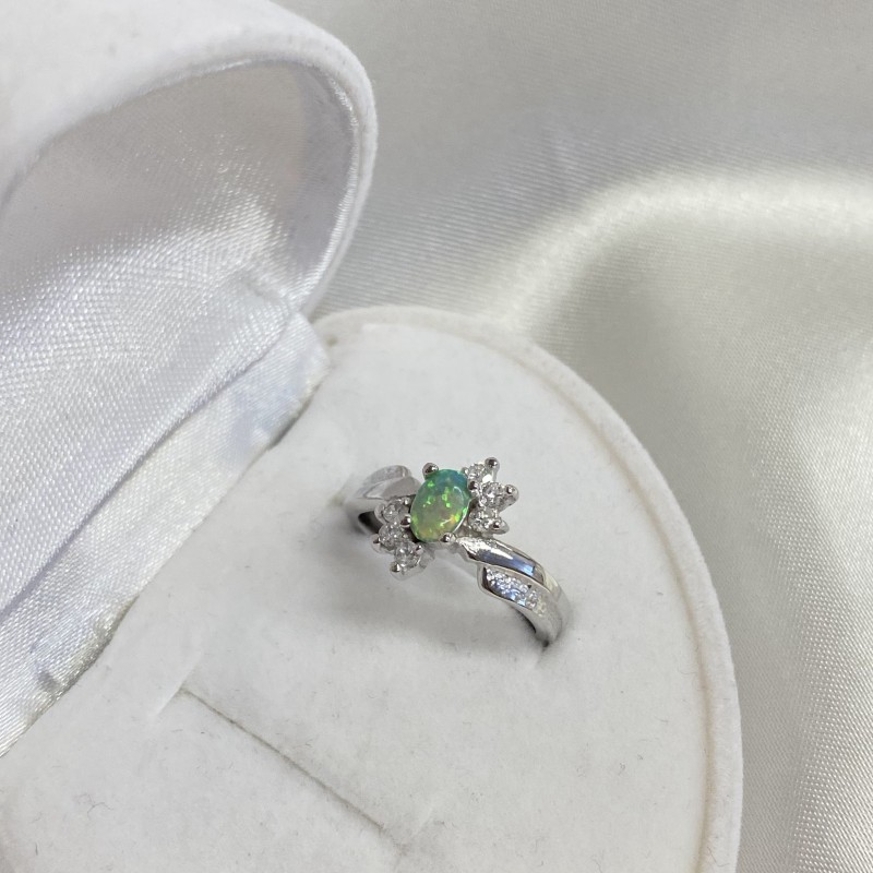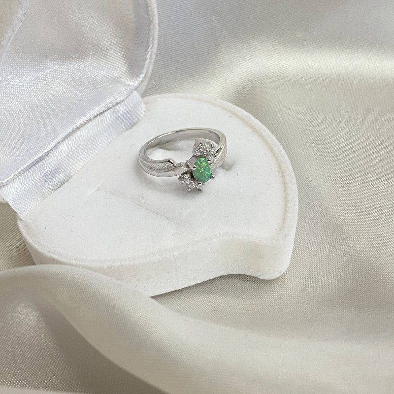 Wunderschöner Ring aus 925er Sterlingsilber mit bezaubernden grünen Opal- und funkelnden Zirkonia-Einsätzen. Ein solcher Ring wird die Verfeinerung des Geschmacks betonen und Ihnen das Gefühl geben, eine echte Königin zu sein.