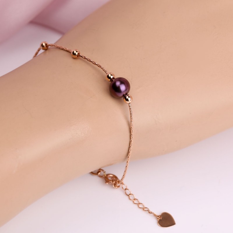 Rotgold, verziert mit schwarzen Perleneinsätzen und Goldkugeln an einer "Fuchsschwanz"-Webkette. Schönheit, Luxus und sonst nichts! Ein solches Armband wird die Hand perfekt schmücken und ihre Eleganz betonen, das Bild ergänzen und ihm Charme, Weiblichkeit und Raffinesse verleihen!