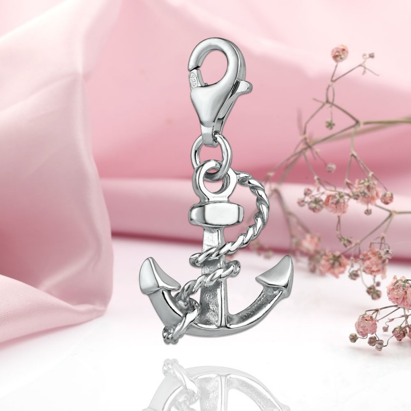 Silberanhänger in Form eines Ankers aus 925er Sterlingsilber, mit Karabiner. Verschluss – Karabiner ermöglicht die Befestigung des Anhängers an Armbändern, Ketten, Ohrringen oder die Verwendung des Anhängers als Schlüsselanhänger. Die Aufhängung ist einseitig, halbvolumetrisch. Überzogen mit Rhodium!