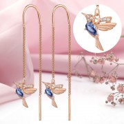 Am U-förmigen Schloss schwingen frei gepanzerte Ketten mit einem Anhänger in Form eines Kolibri mit Einsätzen aus Saphiren und Zirkonias. Auf der Rückseite des Schlosses sind zusätzlich freischwingende Ketten befestigt. Ohrringe sind immer in Bewegung, sehen originell und schön aus und ziehen alle Blicke auf ihre Herrin!