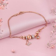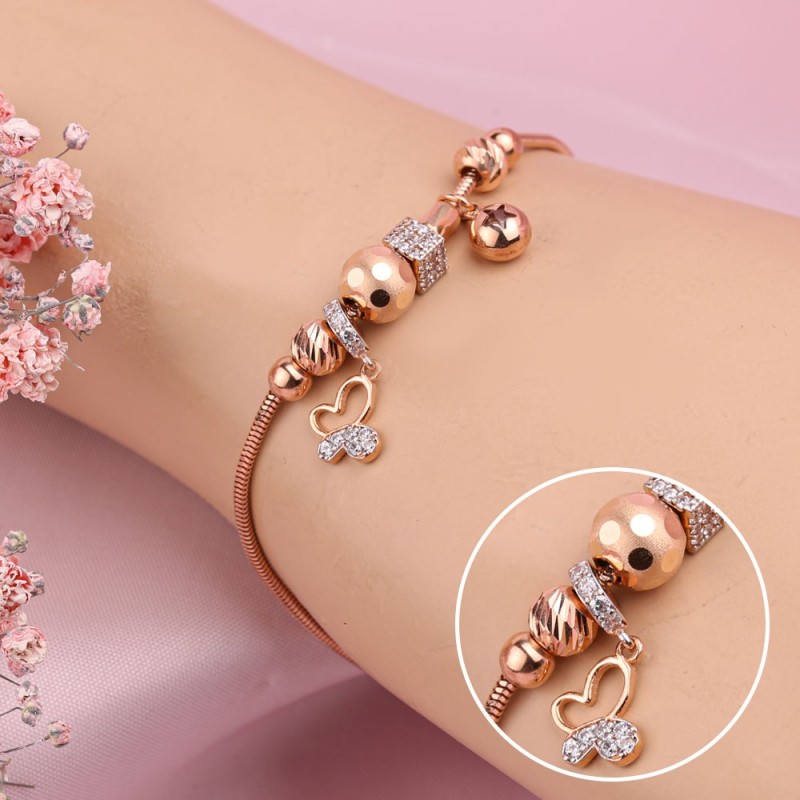 Rotgold. An der Webkette „Snake“ sind bezaubernde Anhänger mit Einsätzen aus funkelnden Zirkonias und diamantgeschliffenen Kugeln angebracht, die ihnen ein originelles Muster verleihen. Solch ein Armband wird elegante Frauenhände perfekt schmücken! Ein wunderbares Geschenk für einen geliebten Menschen!