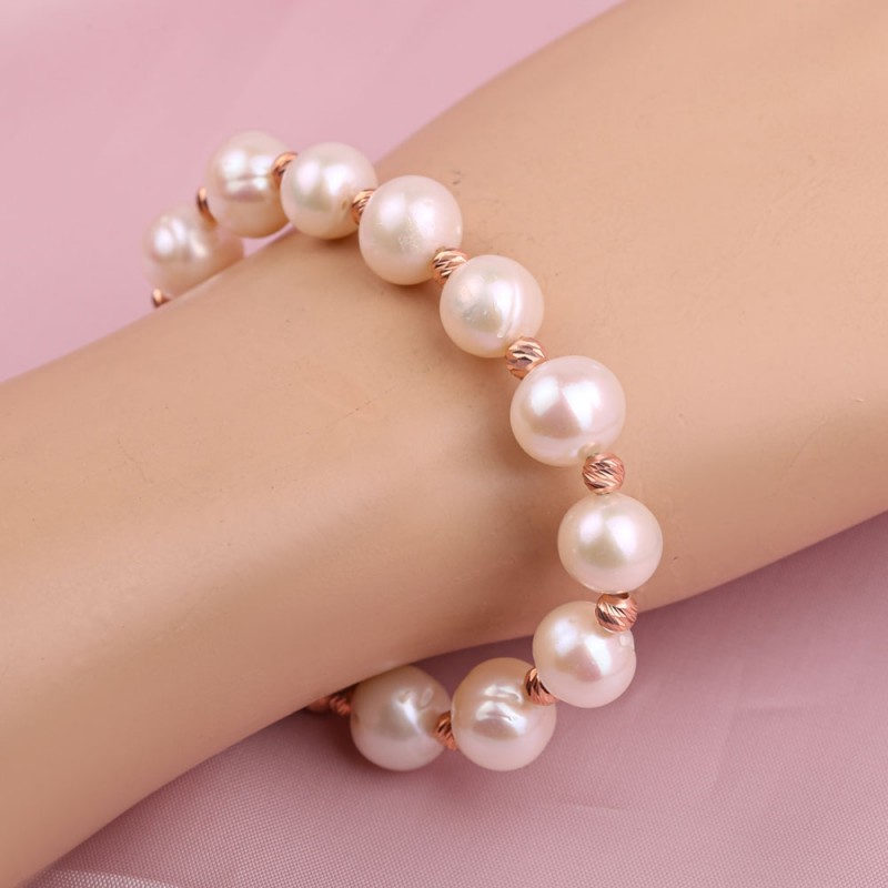 Eine ausgezeichnete Perlenkette, verziert mit natürlichen Zuchtperlen, die unter normalen Bedingungen künstlich gezüchtet sind! Jede Perle hat ihre eigene einzigartige Form, ein Geschenk der Natur! Zwischen den Perlen befinden sich Kugeln aus 925 vergoldetem Silber mit Diamantschliff, wodurch sie ein einzigartiges Muster erhalten und die zarten Perlen perfekt ergänzen.