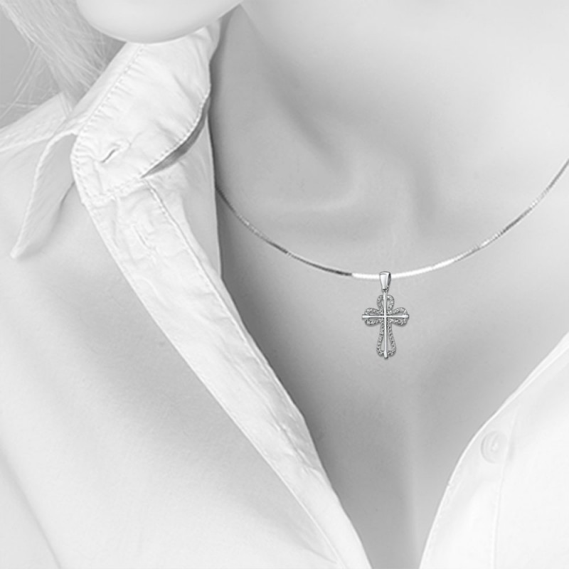 Silberkreuz mit Zirkoniaeinsatz, 925er Silber. Überzogen mit Rhodium! Kratzt beim Tragen nicht.