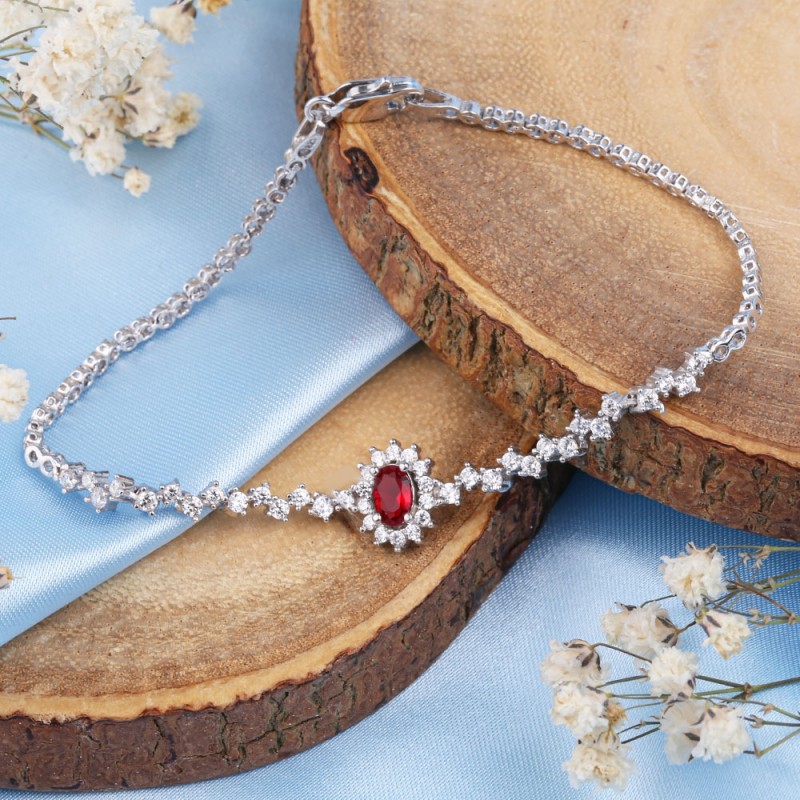 Einsatz: Zirkonia Ø 2,0 mm; 1 ovaler Zirkonia in Granatfarbe 6,0 x 4,0 mm