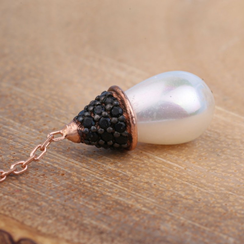 Einsatz: schwarzer Kreiszirkonia Ø 1,0 mm; 2 Perlen Birne 9,0 x 6,0 mm