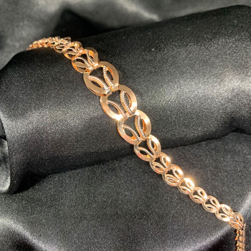 Rotgold liegt in seiner Stärke, Widerstandsfähigkeit gegen Lasten und Haltbarkeit. Diese Vorteile ermöglichen es Ihnen, leichten durchbrochenen Schmuck zu kreieren, ohne befürchten zu müssen, dass das Material schnell seine Form verliert oder geätzt wird.Schmuck aus rotem Material sieht toll aus, auch wenn er nicht von Edelsteinen instruiert wird. Solche Produkte eignen sich für jede Art von Haut, schmücken eine Frau jeden Alters und geben den Anschein von Raffinesse und Eleganz.