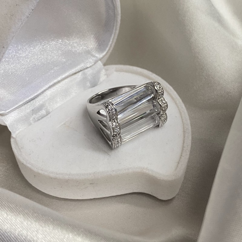 Herrlicher zarter Ring mit charmanten funkelnden Zirkonia verschiedener Größe und Form in einem schönen Silberrahmen aus 925er Silber. Ein wunderbares Geschenk für Ihre Geliebte, das ihre einzigartige Schönheit betonen wird!