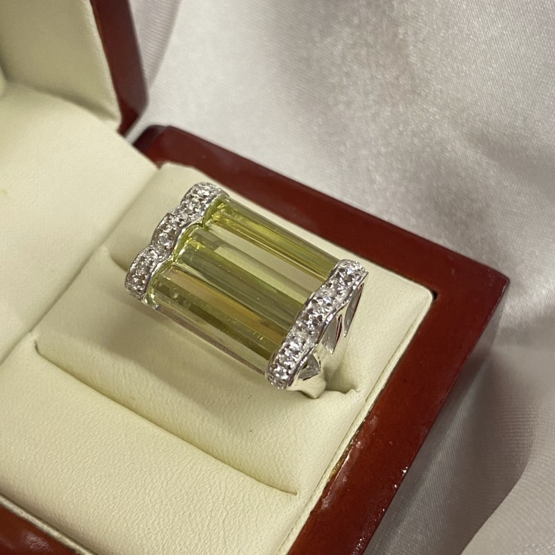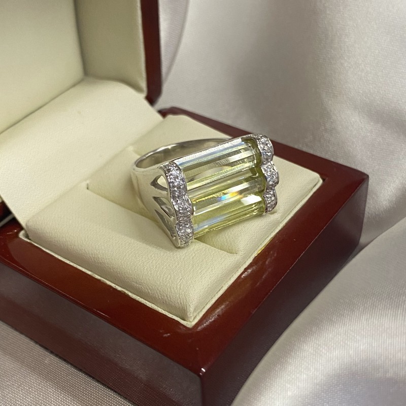 Einsatz: Zirkonia-Kreis Ø 1,0 mm; Zirkonia-Baguette zitronenfarbig 16,0 x 5,0 mm