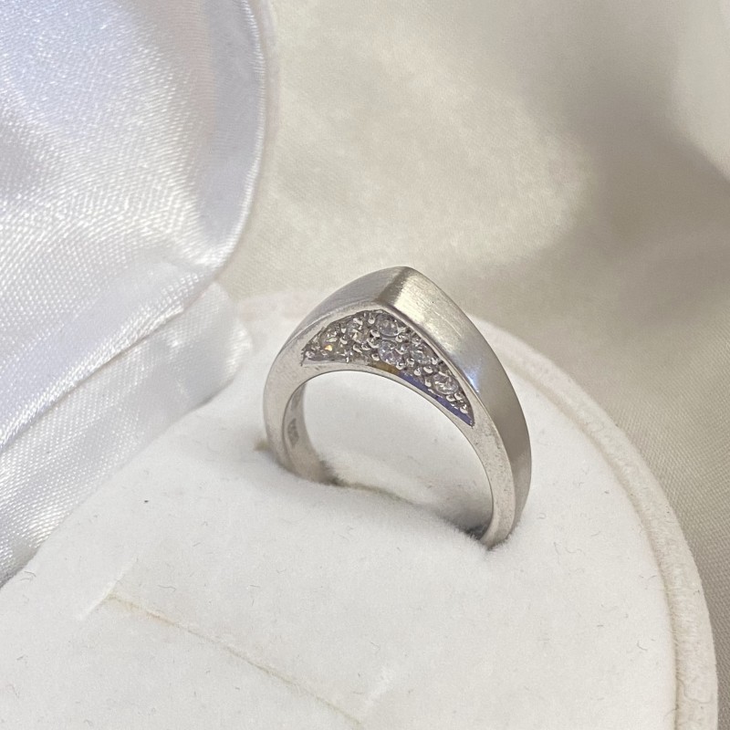 Entzückender Ring in origineller Form mit bezaubernden funkelnden Zirkonias. Der Ring wirkt prägnant und stilvoll in einem wunderschönen Rahmen aus 925er Sterlingsilber und schafft eine helle und lebendige Komposition. Es wird die Zartheit, den Charme und die natürliche Schönheit Ihrer Hände perfekt betonen! Das originelle Design des Rings wird Ihre Individualität widerspiegeln!