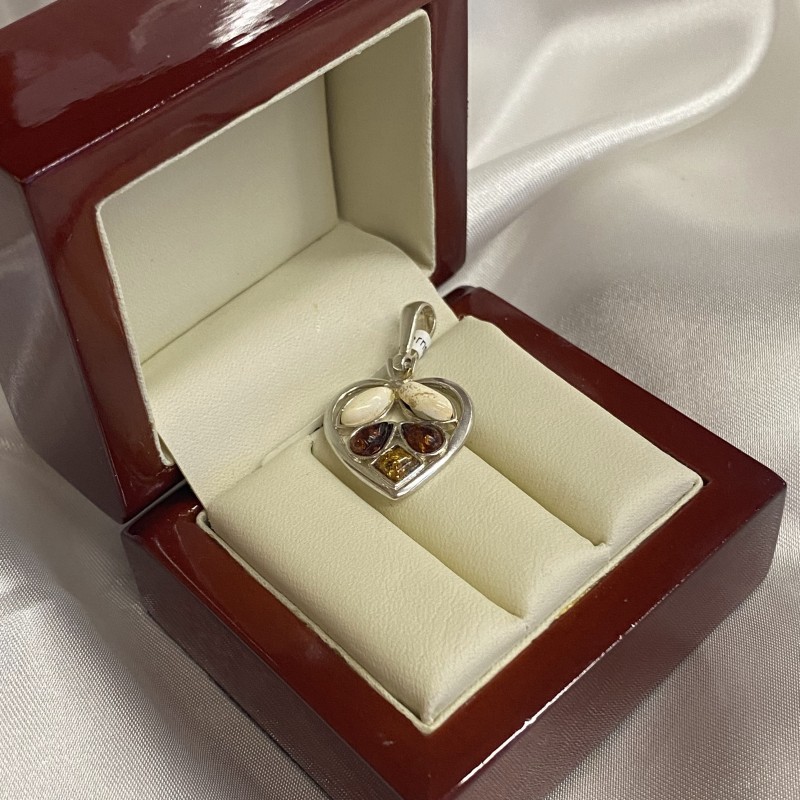 Ein charmanter Anhänger aus 925er Silber und einzigartigem Bernstein, mit diesem erstaunlichen "Stück der Sonne", das mit allen Tönen spielt.