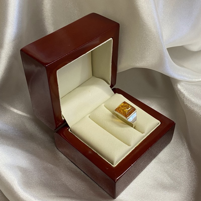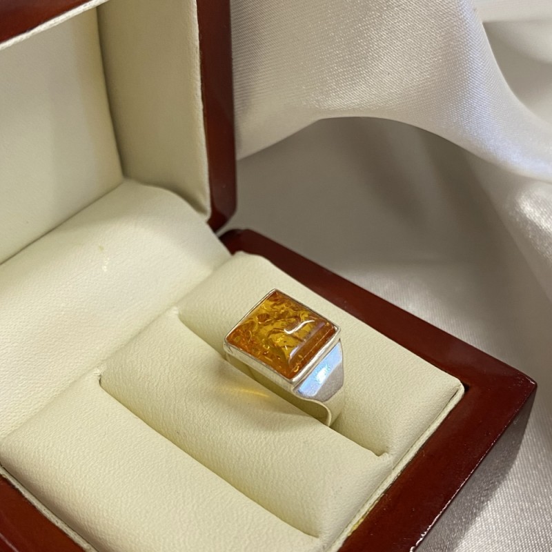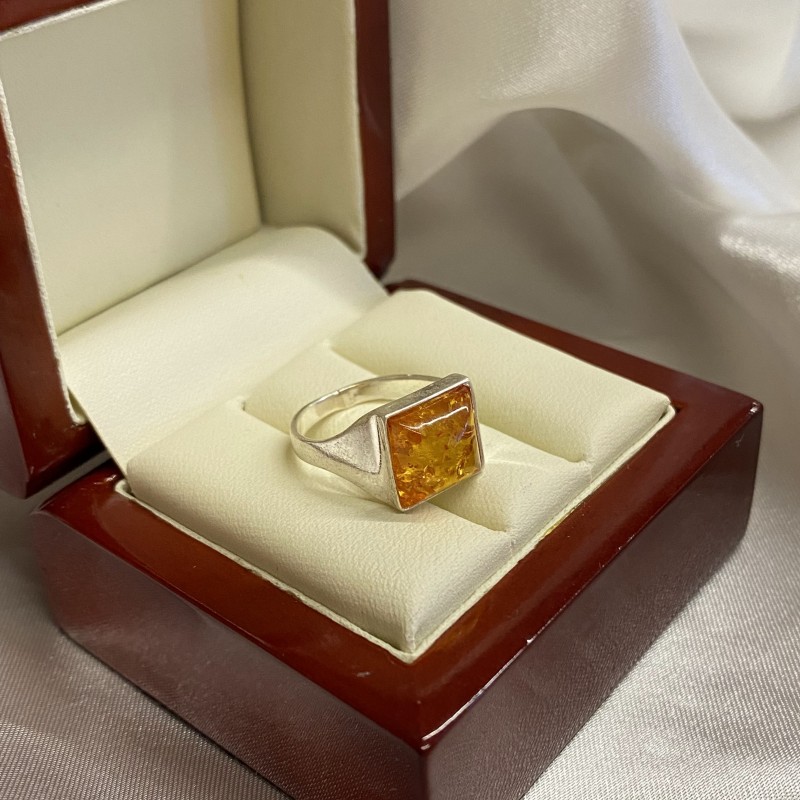 Eleganter Ring aus 925er Silber, verziert mit Bernstein, mit diesem erstaunlichen "Stück der Sonne", in allen Schattierungen der Cognacfarbe, begeistert und erfreut Sie dank seiner Schönheit! Der Ring wird die Zärtlichkeit, den Charme und die Natürlichkeit Ihrer Schönheit perfekt betonen und die Aufmerksamkeit auf die Weiblichkeit Ihrer Hände lenken.