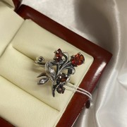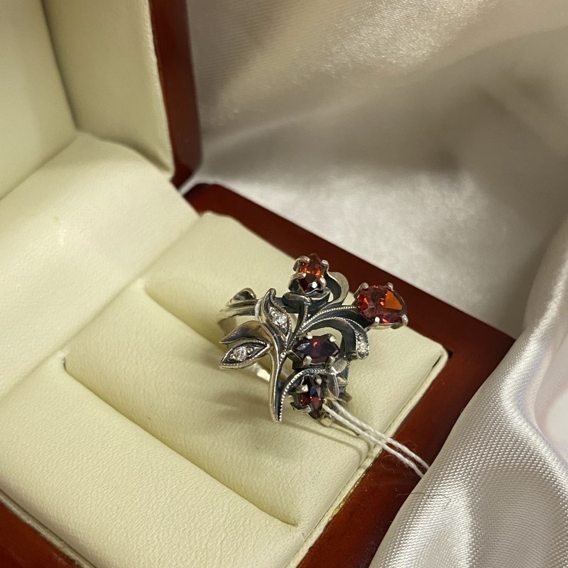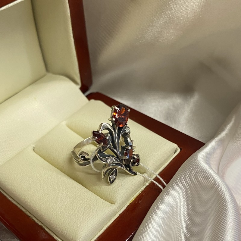 Herrlicher zarter Ring mit charmanten Granat und funkelnden Zirkonia in einem schönen Silberrahmen aus geschwärztem 925er Silber. Ein wunderbares Geschenk für Ihre Geliebte, das ihre einzigartige Schönheit betonen wird!