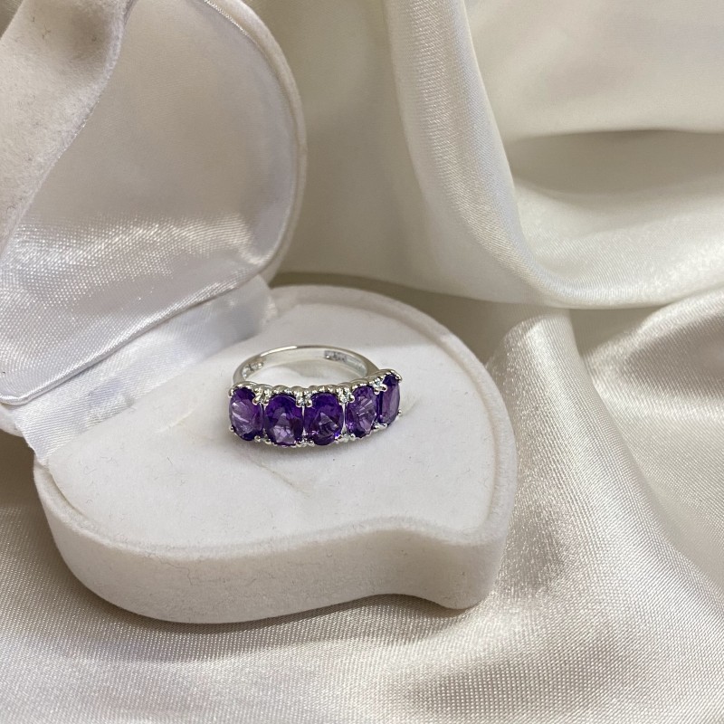 Romantischer, zarter Ring mit charmanten funkelnden großformatigen amethystfarbigen Zirkonias. Der Ring wirkt prägnant und stilvoll in einem wunderschönen Rahmen aus 925er Sterlingsilber und schafft eine helle und lebendige Komposition. Es wird die Zartheit, den Charme und die natürliche Schönheit Ihrer Hände perfekt betonen! Das originelle Design des Rings wird Ihre Individualität widerspiegeln!