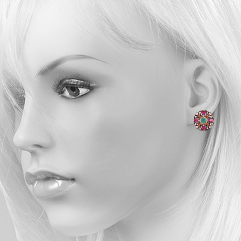 Schicke Ethno-Ohrringe aus geschwärztem und vergoldetem 925er Silber mit mit Einsätzen aus bezaubernden Smaragden, Rubinen und funkelnden Zirkonias!