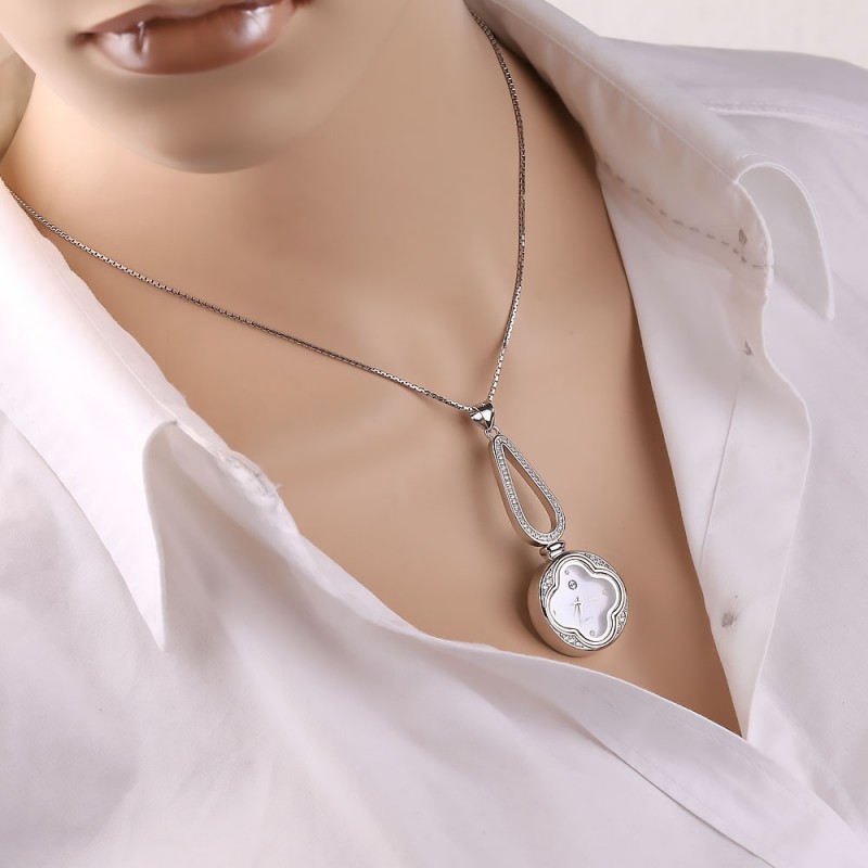 Eine elegante Quarzuhr als Anhänger, gefertigt aus 925er Sterlingsilber und verziert mit funkelndem Zirkonia.