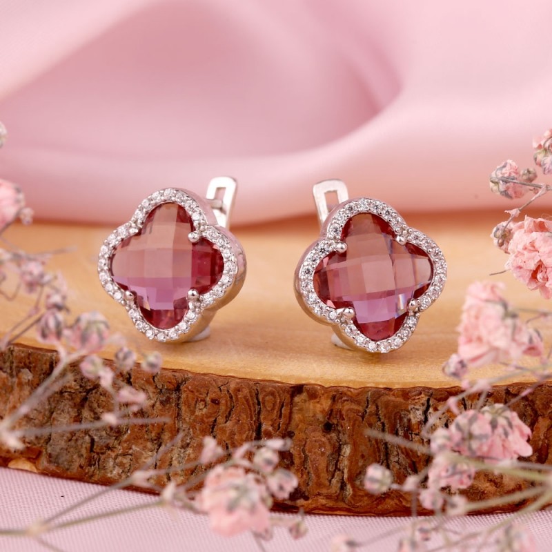 Bezaubernde Ohrringe aus 925er Sterlingsilber, verziert mit funkelnden Zirkonia und ungewöhnlich schönem Sultanit besonderer Form.
