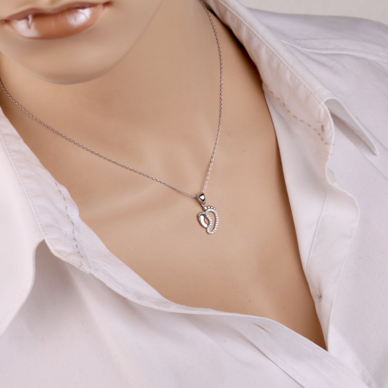 Halskette aus 925er Sterlingsilber mit einem dekorativen Anhänger mit Zirkoniaeinsatz. Kettenweberei - Anker, Diamantschliff.