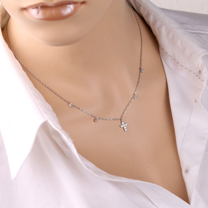 Halskette aus 925er Sterlingsilber mit einem Kreuzanhänger mit Zirkoniaeinsatz. Kettenweberei - Anker, Diamantschliff.