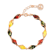 Ein festliches feminines Armband aus vergoldetem 925er Silber verziert mit Bernstein, mit diesem erstaunlichen "Stück der Sonne", in allen Schattierungen von Grün, Honig und Cognac spielt, verzaubert und mit seiner Schönheit besticht, wird Sie immer wieder begeistern! Eine einzigartige Gelegenheit, Ihre Individualität zu betonen, das Bild von Weiblichkeit und Zärtlichkeit zu vermitteln. Eine schöne Kombination aus glitzerndem Gold und sonnigem Bernstein verleiht Ihrem Look eine festliche Stimmung!