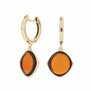 Wunderschöne Ohrhänger aus vergoldetem Silber 925 Probe, mit Bernstein in Cognactönen, erstaunlichen "Stück der Sonne"! Eine einzigartige Gelegenheit, Ihre Individualität zu betonen, das Bild von Weiblichkeit, Sonnenschein und Zärtlichkeit zu vermitteln.