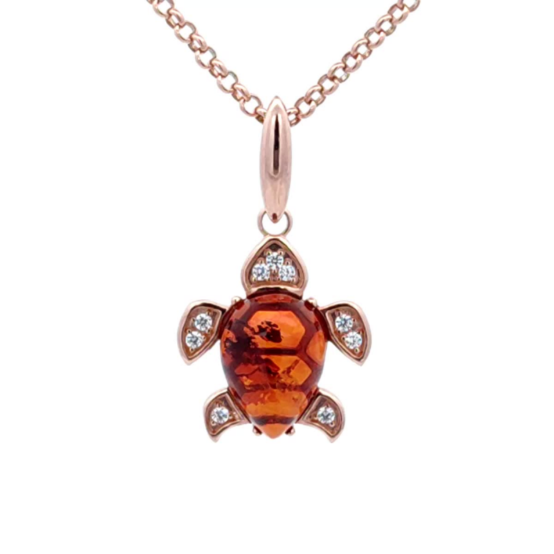 Vergoldeter Silberanhaenger "Schildkroete". Bernstein & Zirkonia