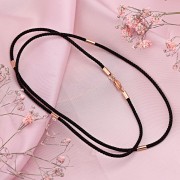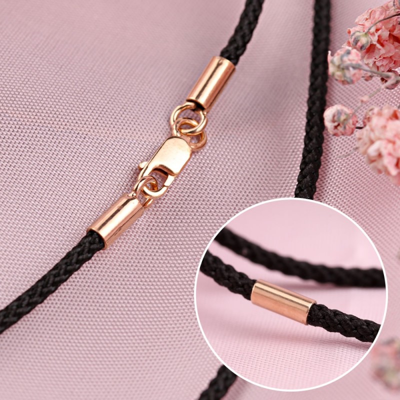 Schwarze Textilschnur mit vergoldeten Enden und zylindrischen Einsätzen. Verbindet Anhängerschloss-Karabiner. Silber 925 und vergoldet 585. Perfekt für alle vergoldeten Silberanhänger.