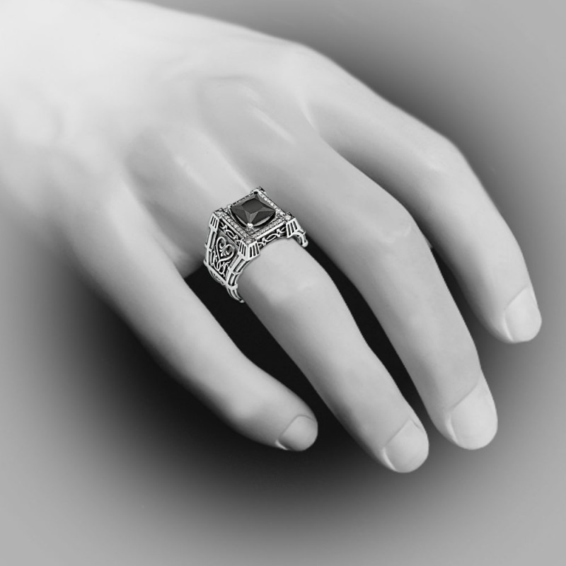 Herren-Siegelring im antiken Stil aus oxidiertem 925er Sterlingsilber, verziert mit großem Onyx, funkelndem Zirkonia und geprägtem Muster. Jeder Mann möchte seinen eigenen stilvollen Akzent haben, eine teure Sache, die den Status unterstreicht.