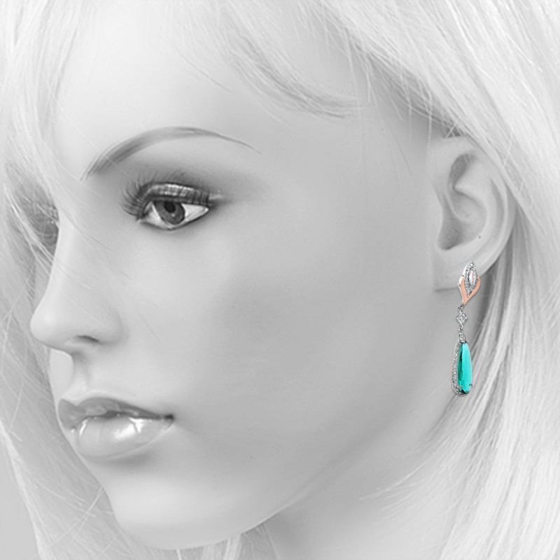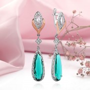 Вставки: 2 фианит маркиз 6.0 х 3.5 мм; фианит Ø 1.0 мм; капля 24.0 х 8.0 мм