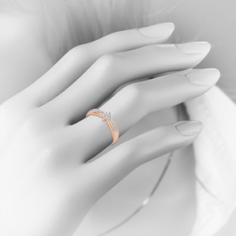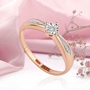 Zierlicher, zarter Goldring mit Diamanten für schöne weibliche Finger! Ring aus 14-karätigem Rot- und Weißgold, besetzt mit funkelnden Diamanten. Der Diamantschliff der Diamantfassung unterstreicht die Schönheit des Steins. Natürlich träumt jede Frau von solch einem unvergesslichen und inspirierenden Geschenk!