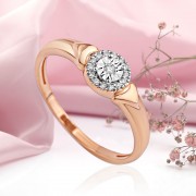 Zierlicher, zarter Goldring mit Diamanten für schöne weibliche Finger! Ring aus 14-karätigem Rot- und Weißgold, besetzt mit funkelnden Diamanten. Der Diamantschliff der Diamantfassung unterstreicht die Schönheit des Steins. Natürlich träumt jede Frau von solch einem unvergesslichen und inspirierenden Geschenk!