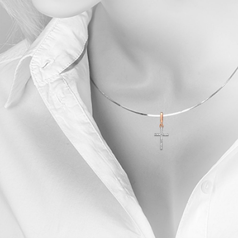 Kreuzanhänger aus 14 Karat Rot- und Weißgold, besetzt mit bezaubernden Diamanten. Die Fassung der Steine in Weißgold unterstreicht ihre Schönheit perfekt!