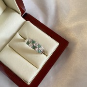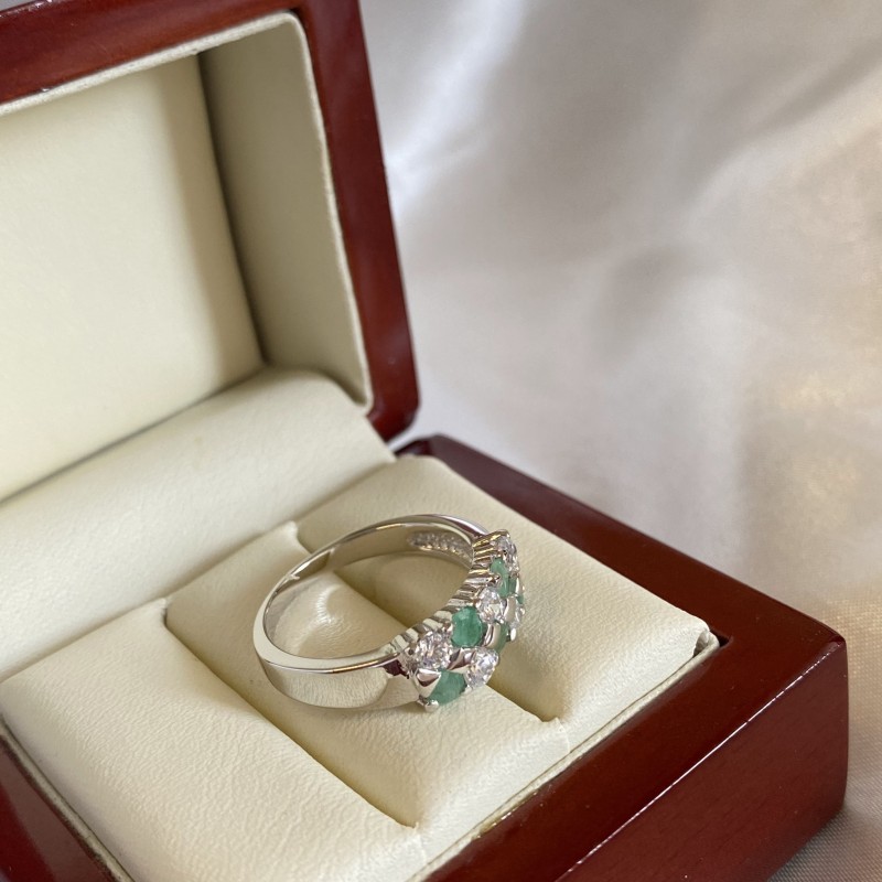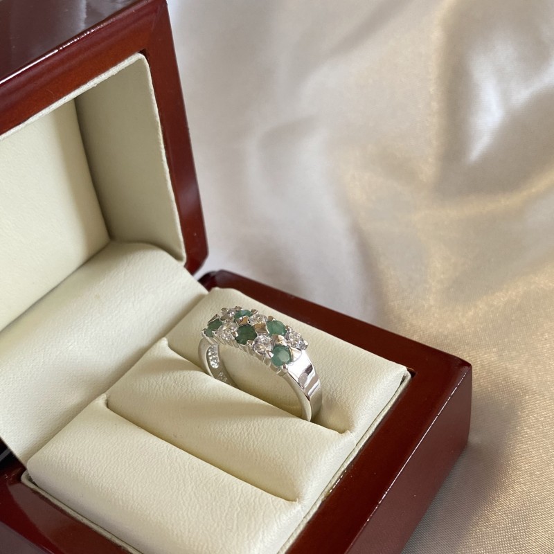 Herrlicher zarter Ring mit charmanten Smaragd und funkelnden Zirkonia in einem schönen Silberrahmen aus 925er Silber. Ein wunderbares Geschenk für Ihre Geliebte, das ihre einzigartige Schönheit betonen wird!