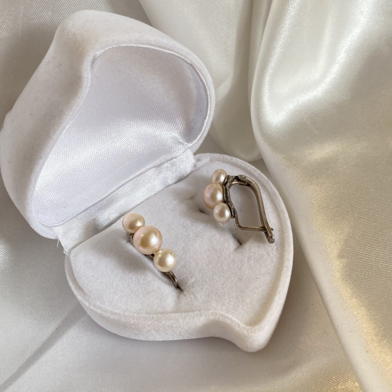 Entzückendes und zartes Set aus geschwärztes 925er Sterlingsilber mit Einsätzen aus hervorragenden Naturperlen! Diese Kombination verleiht dem Produkt ein einzigartiges Aussehen und fesselt das Auge. Ein solches Set wird die Zärtlichkeit, Weiblichkeit und den Charme seiner Herrin unterstreichen!
