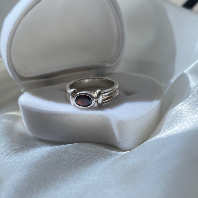 Herrlicher zarter Ring mit charmanten Granat in einem schönen Silberrahmen aus 925er Silber und Vergoldung. Ein wunderbares Geschenk für Ihre Geliebte, das ihre einzigartige Schönheit betonen wird!