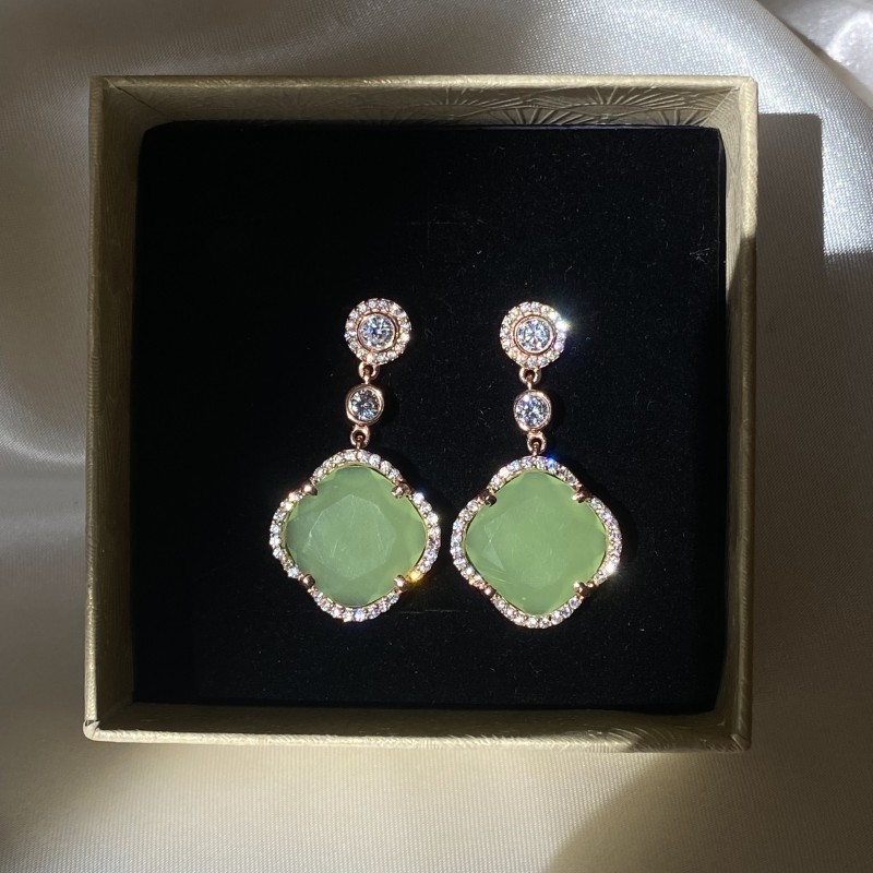 Einsatz: Zirkonia Ø 3,8 mm; 1,5 mm; 2 Chrysopras 14,5 x 14,5 mm