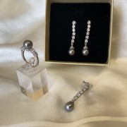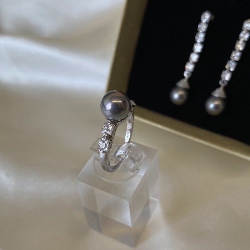 Einsatz: 4 Zirkonia quadratisch 3,0 x 3,0 mm; 1 Perle Ø 8,0 mm