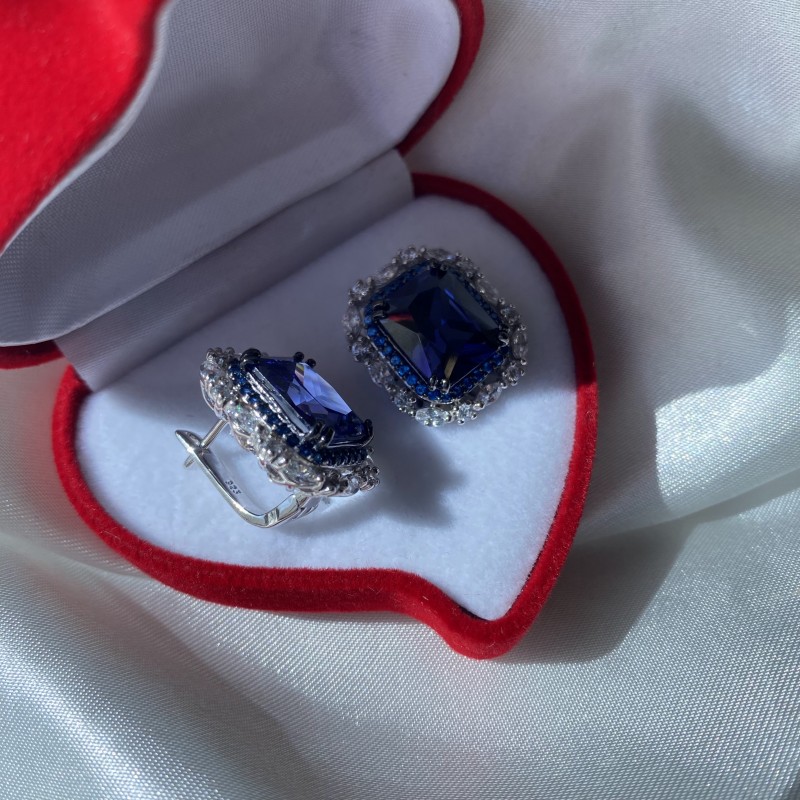 Bezaubernde Ohrringe aus 925er Silber mit Einsätzen aus funkelnden Zirkonia, Swarovski®-Kristallen und großen Iolithen. Sie unterstreichen perfekt die Raffinesse, Weiblichkeit und den Charme ihrer Besitzerin.