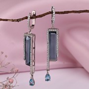 Wunderschöne Ohrhänger aus 925er Sterlingsilber, verziert mit bezaubernden funkelnden Zirkonia, natürlichen London Topas und großen tiefblauen Quarz! Solche Ohrringe strahlen Chic und Unwiderstehlichkeit aus. Mit ihnen werden Sie in jedem Outfit attraktiv sein! Rhodiniert!