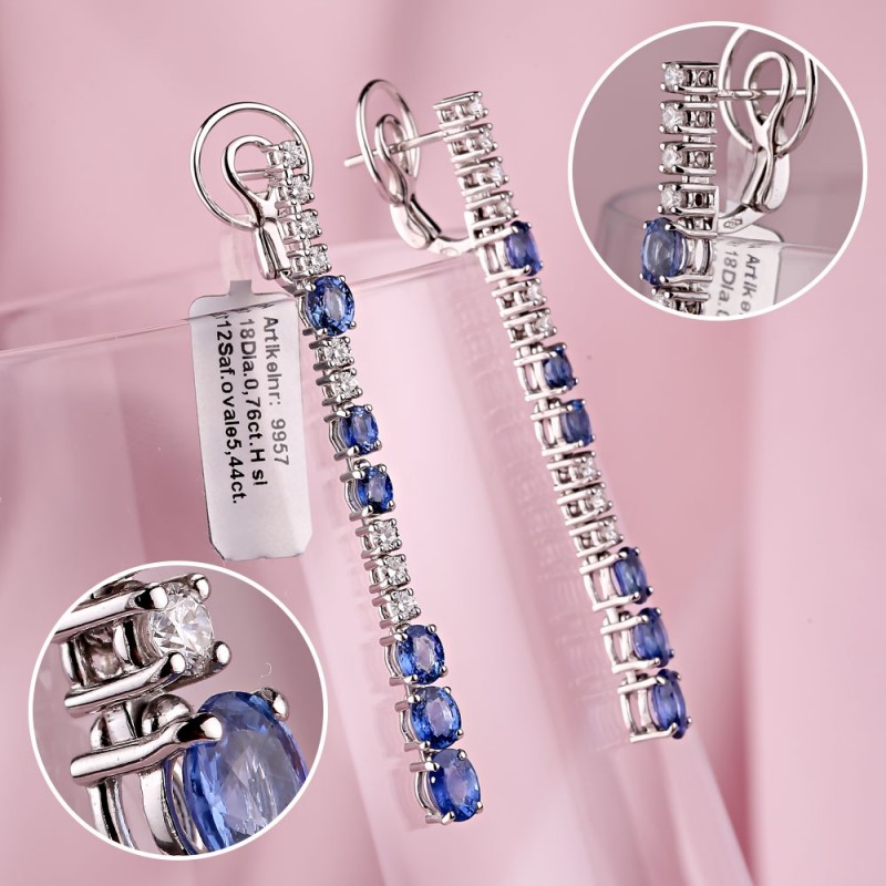 Einsatz: 18 Diamanten 0,76 ct. Нsi Ø 2,5 mm; 12 Saphire oval 5,44 ct. 5,0 x 4,0 mm; 4,0 x 3,0 mm