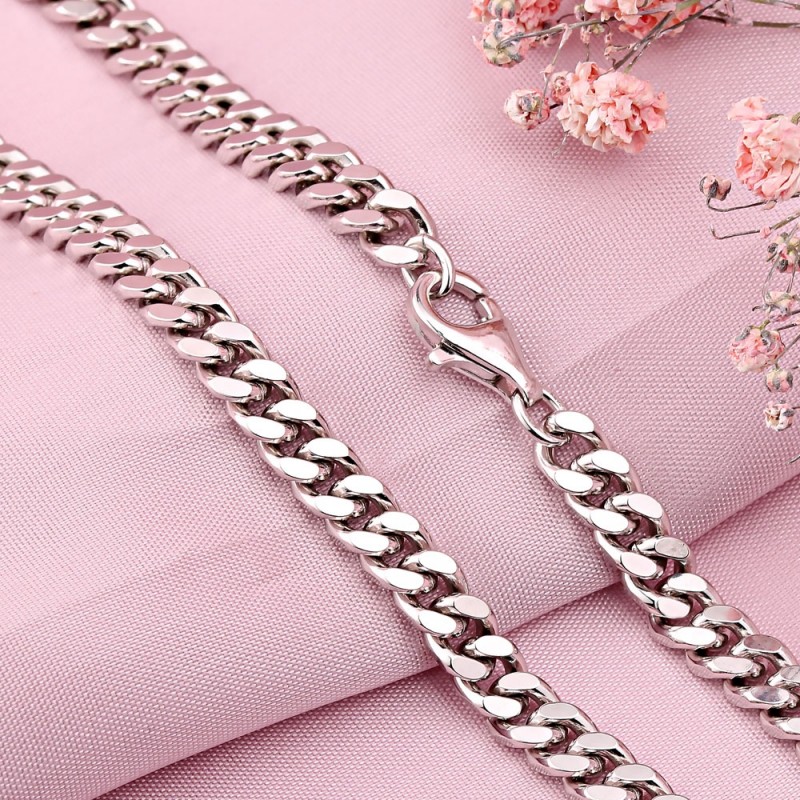 Klassische flache Kette im Panzergeflecht aus 925er-Sterlingsilber mit Diamantschliff. Rhodiniert! Das Weben von Panzerketten ist heute eine der beliebtesten Arten von Halsschmuck. Diese Art des Strickens ist vielfältig, schön und praktisch. Das vielseitige Schleifen der Glieder verleiht ihnen Glanz und Attraktivität. Das Panzerweben ist langlebig und zuverlässig.