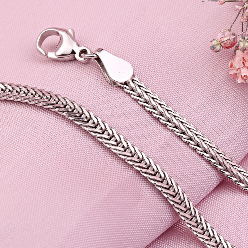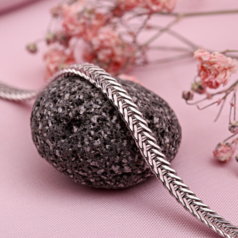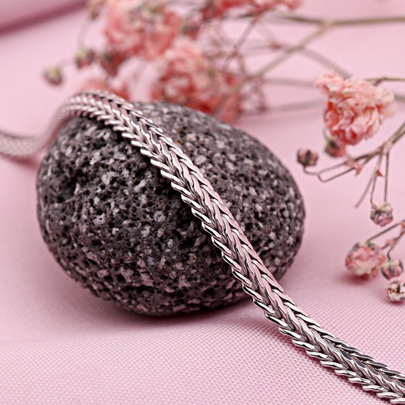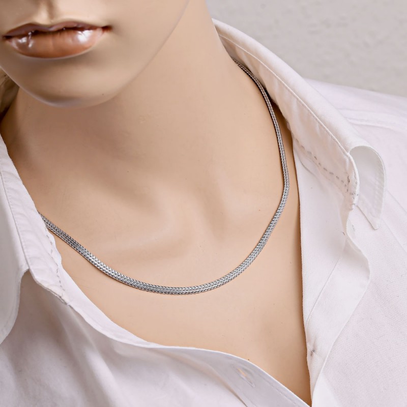 Klassische Kette (flach) aus 925er-Sterlingsilber. "Ähre" Weberei. Rhodiniert! Weberei "Ähre" ist eine Unterart der Panzerweberei, die an Weizenähren erinnert. Goldketten mit solcher Optik sehen besonders beeindruckend aus. Und das Diamantschliff unterstreicht die Brillanz. Durch die enge Passform der Elemente erweist sich "Ähre" als strukturiert, voluminös und recht langlebig. Diese Option hat Flexibilität, aber es ist schwierig, sie zu verwirren, sie ist perfekt für den Alltag. Die Komplexität der Ausführung ist hoch und der Preis ist angemessen.