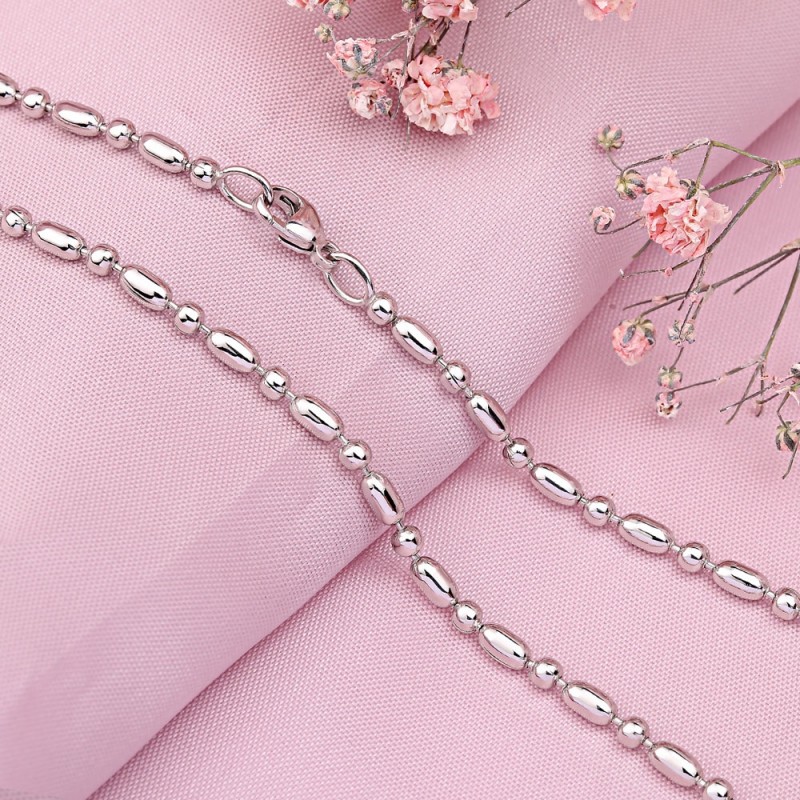 Charmante Armbänder und Ketten „Kugel + Fass“ aus 925er Sterlingsilber, rhodiniert. Das Weben von
