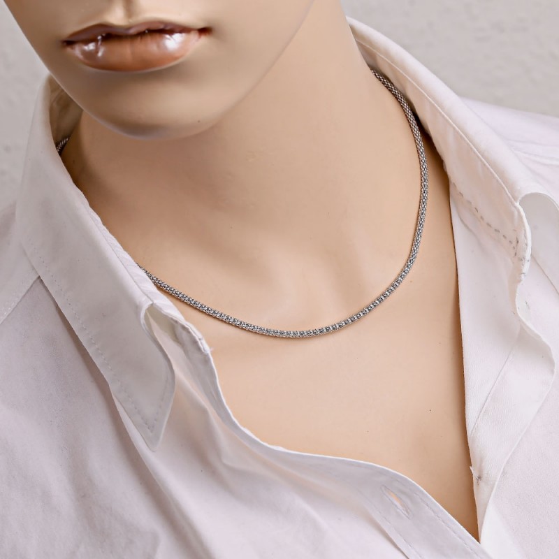 Charmante volumetrische Kette aus 925er Silber mit ausgefallener Webung, handgefertigt. Das Weben von Fantasieketten ist eine Technik, die sich von allen beliebten und klassischen Techniken völlig unterscheidet. Diese Wendung wird durch die freie Entfaltung des kreativen Geistes des Meisters dominiert, der selbst die Verbindung der Glieder herstellt und der Dekoration eine einzigartige, noch nie dagewesene Form verleiht. Rhodiniert!